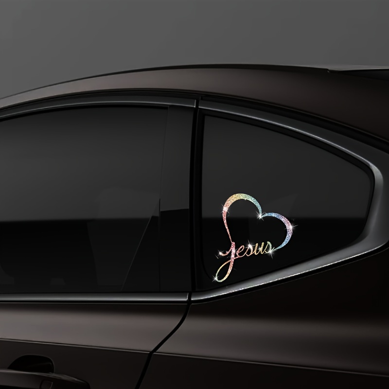 1pc JESUS Car Door Decoration Sticker Love Reflective Decal Window Fashionable Bling Shiny Car Decal