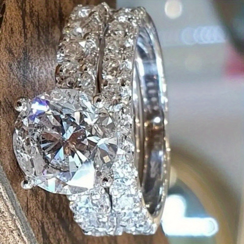 2/ Piece Dazzling Women's Promise Ring Set, Comes with Round White Synthetic Zirconia, Silver-plated Plated Sparkling Engagement Women's Party Decoration Wedding Jewelry Romantic Luxury Eternal Symbol Christmas Gift