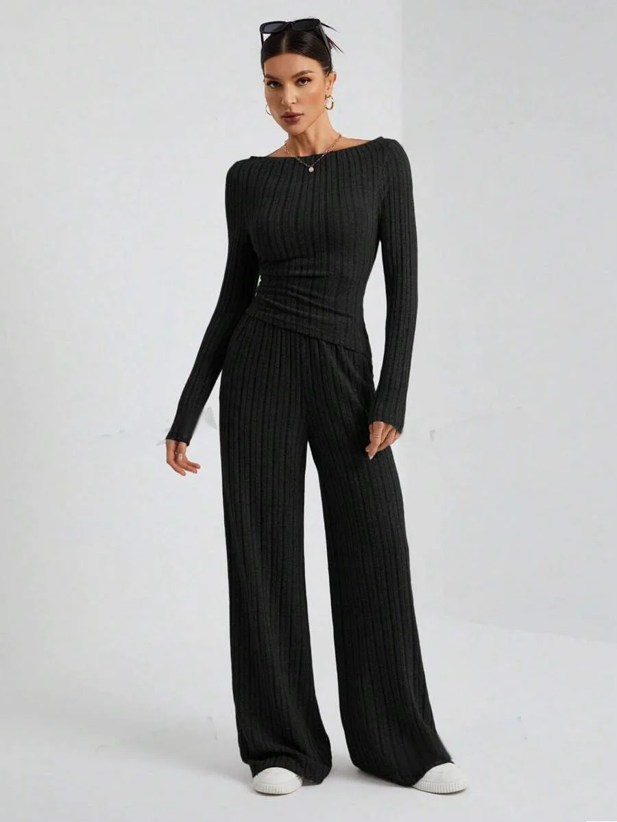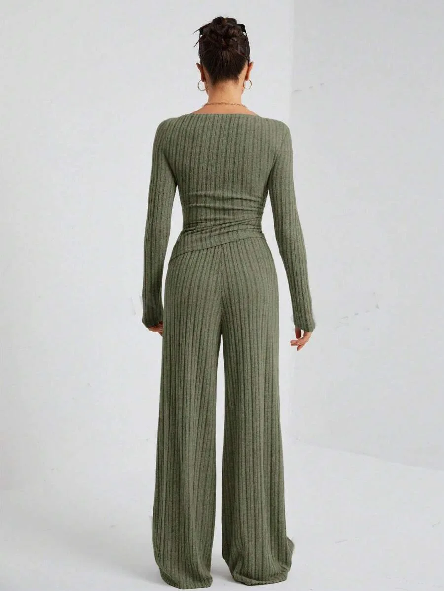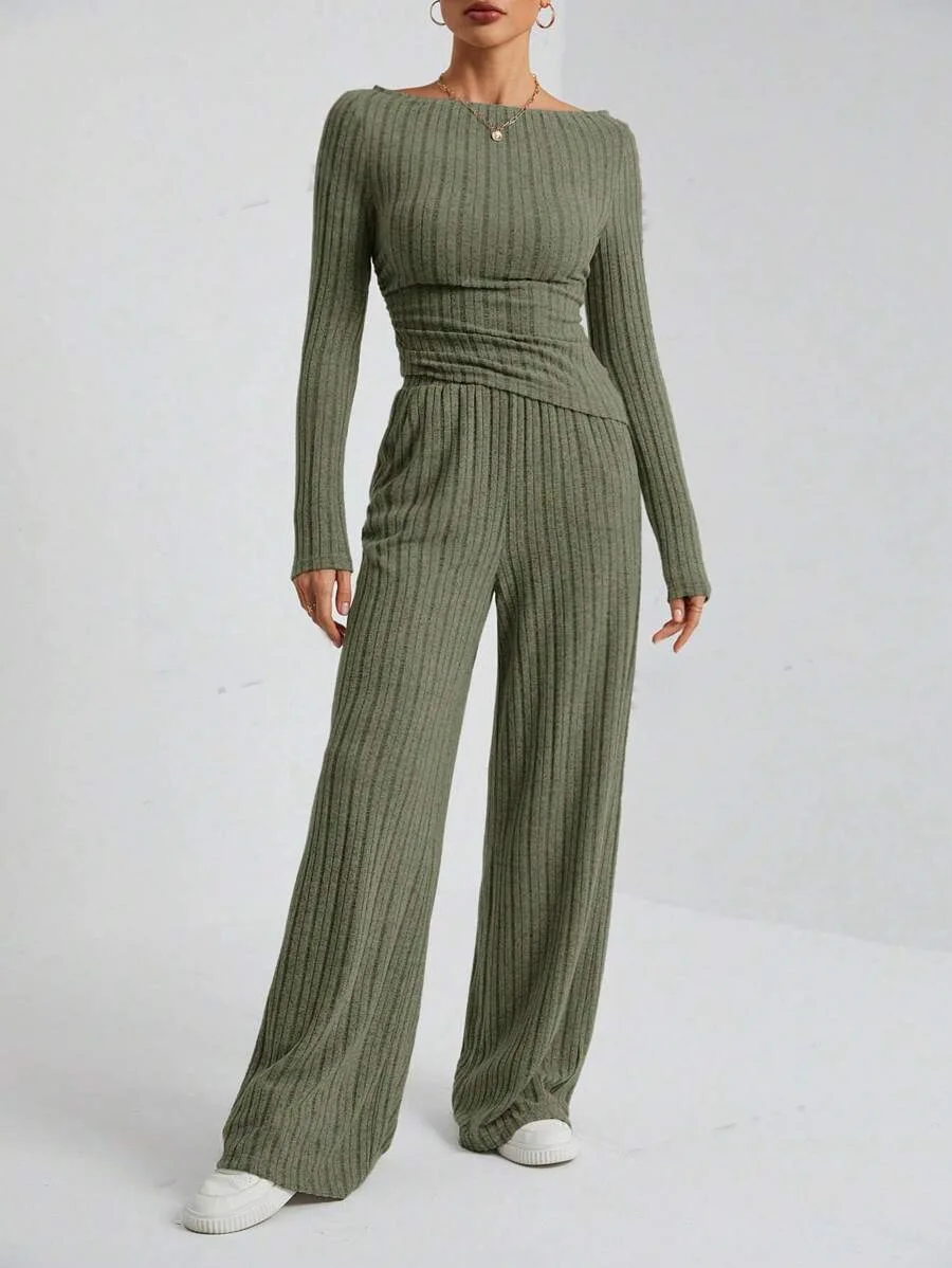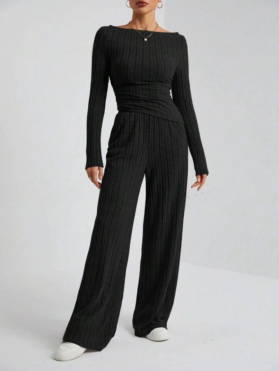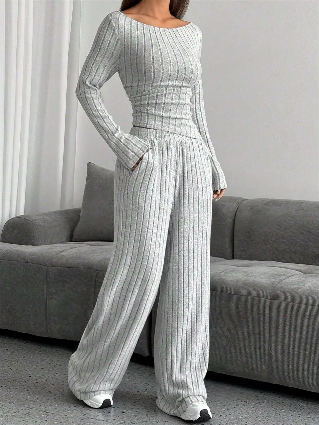 2024 Spring Knitted 2 Piece Sets Women Tracksuit Long Sleeve Vintage Sweater Crop Top Flare Pants Stretch Matching Suit Outfit