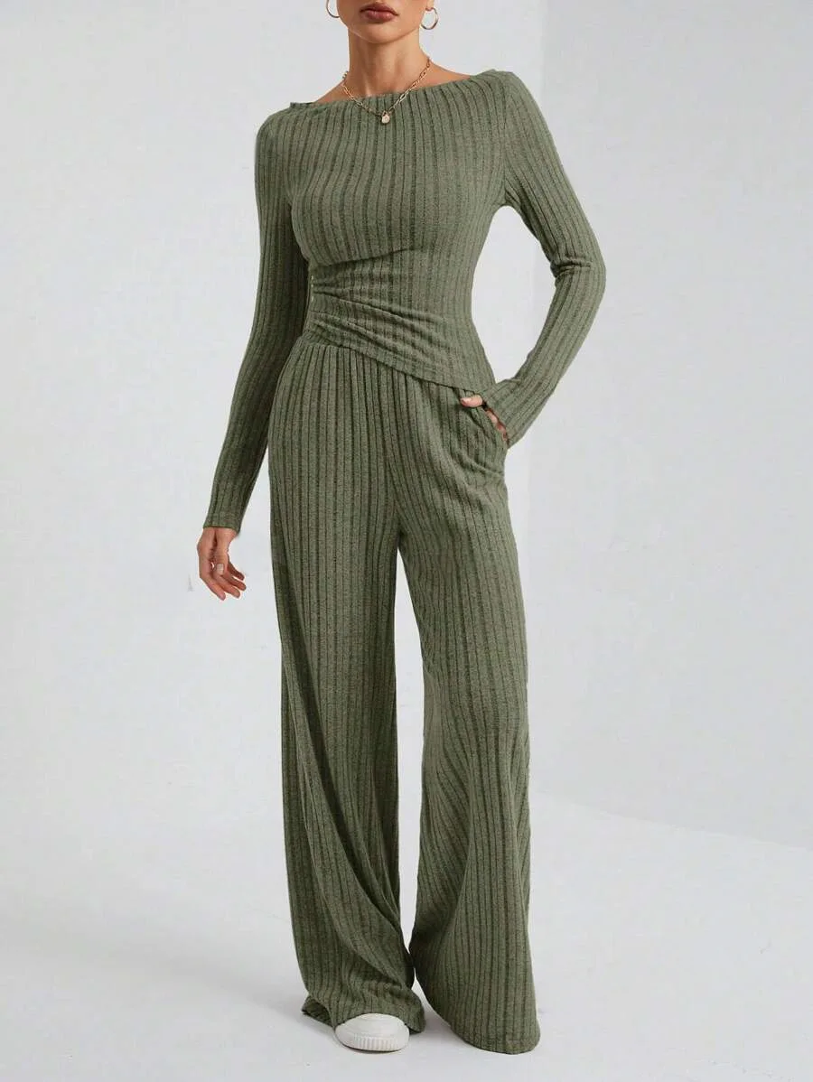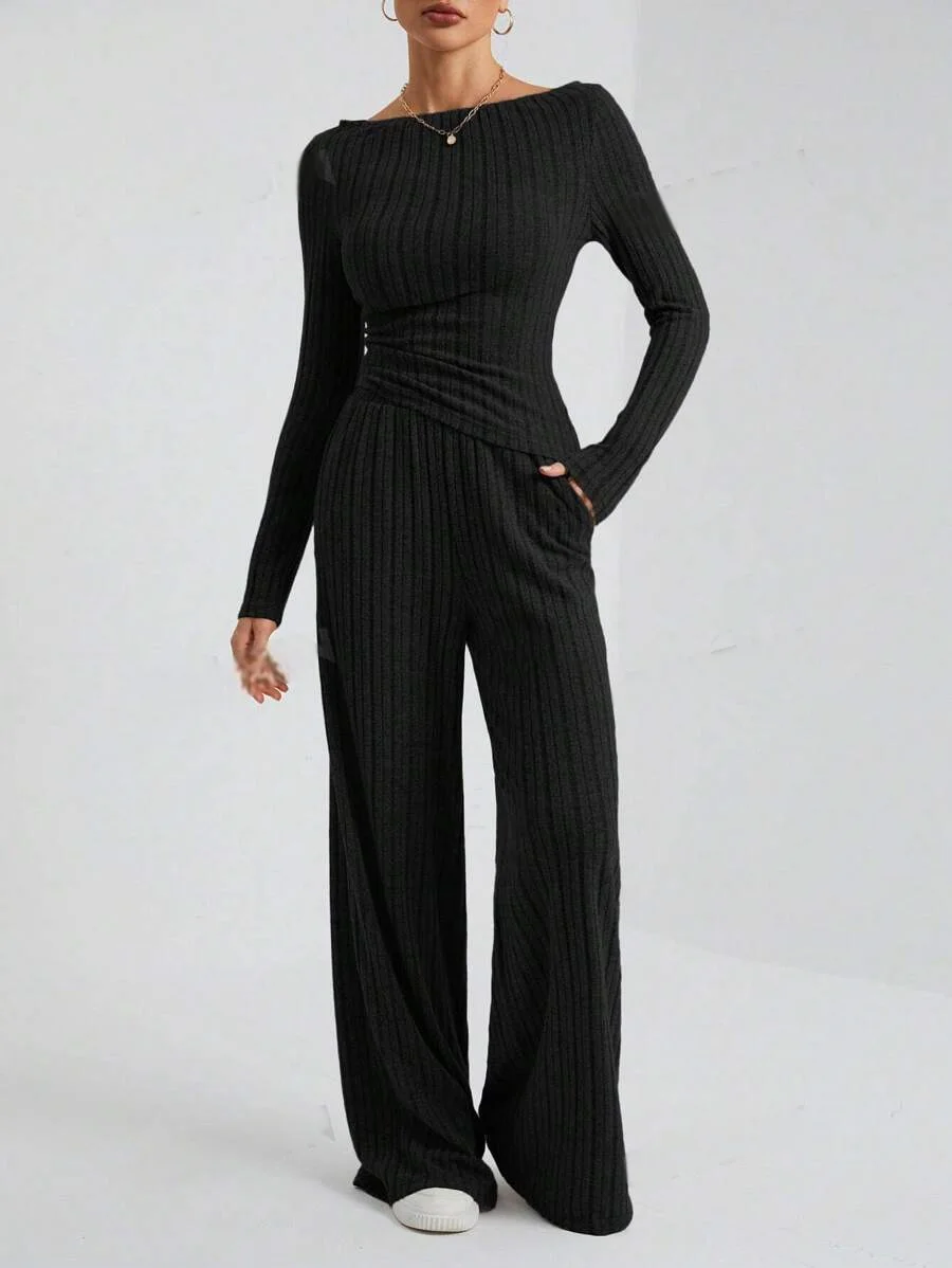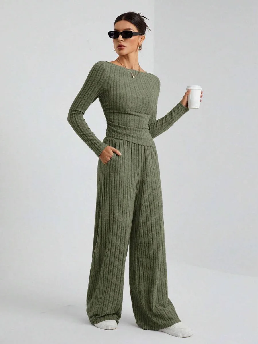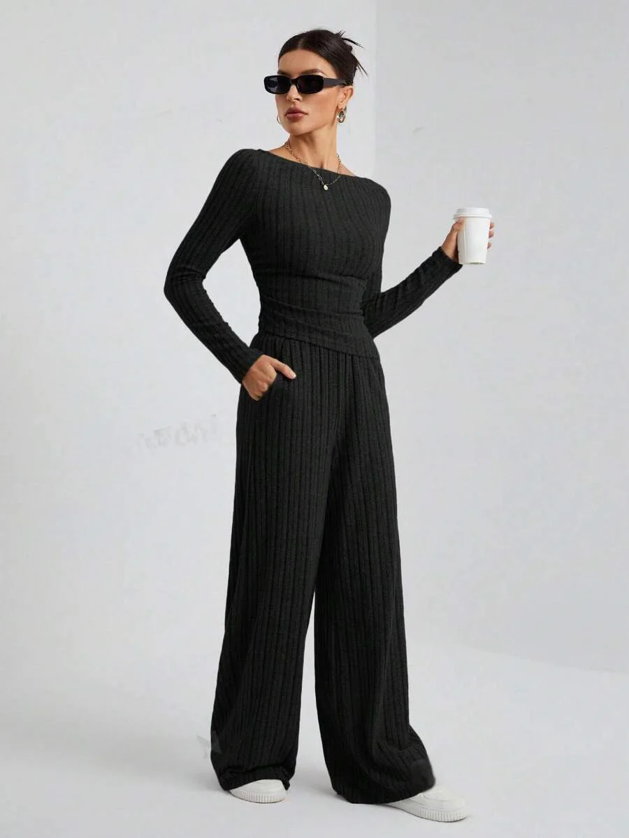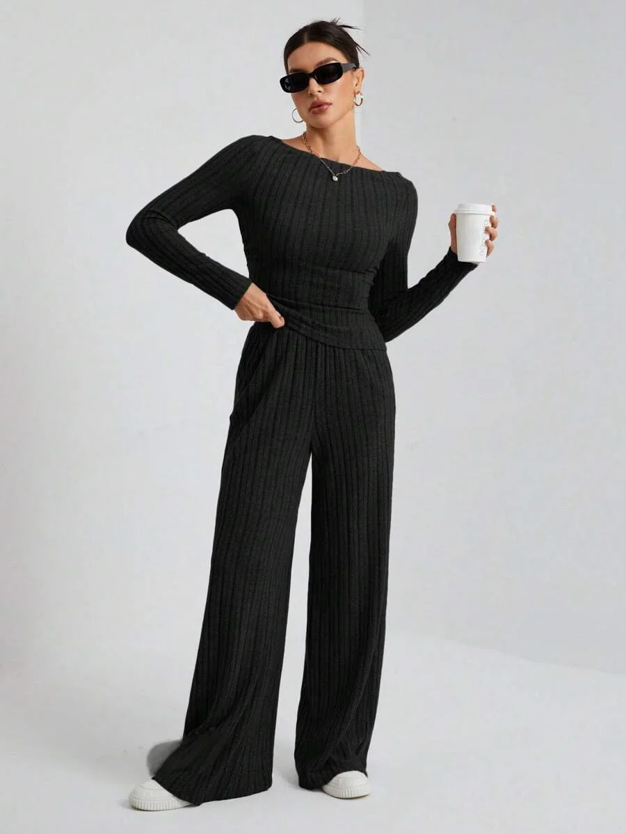 2024 Spring Knitted 2 Piece Sets Women Tracksuit Long Sleeve Vintage Sweater Crop Top Flare Pants Stretch Matching Suit Outfit