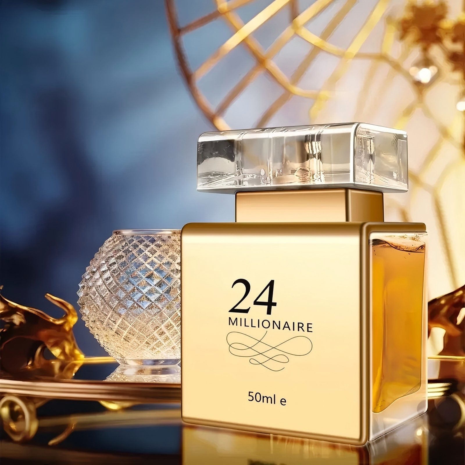 24 Millionaire Eau De Parfum for Women 1.7oz - Luxurious Golden-Tone Transparent Bottle, Long-Lasting Floral & Fruity Scent, 10-20% Concentration, Perfect for Dating, Daily Use & Gift Giving