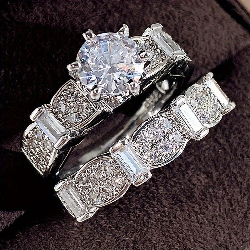 2pcs Paved Shining Zirconia Glamorous Stacking Rings Symbol Of Luxury And Nobility Engagement/Wedding Ring Dupes Luxury Jewelry
