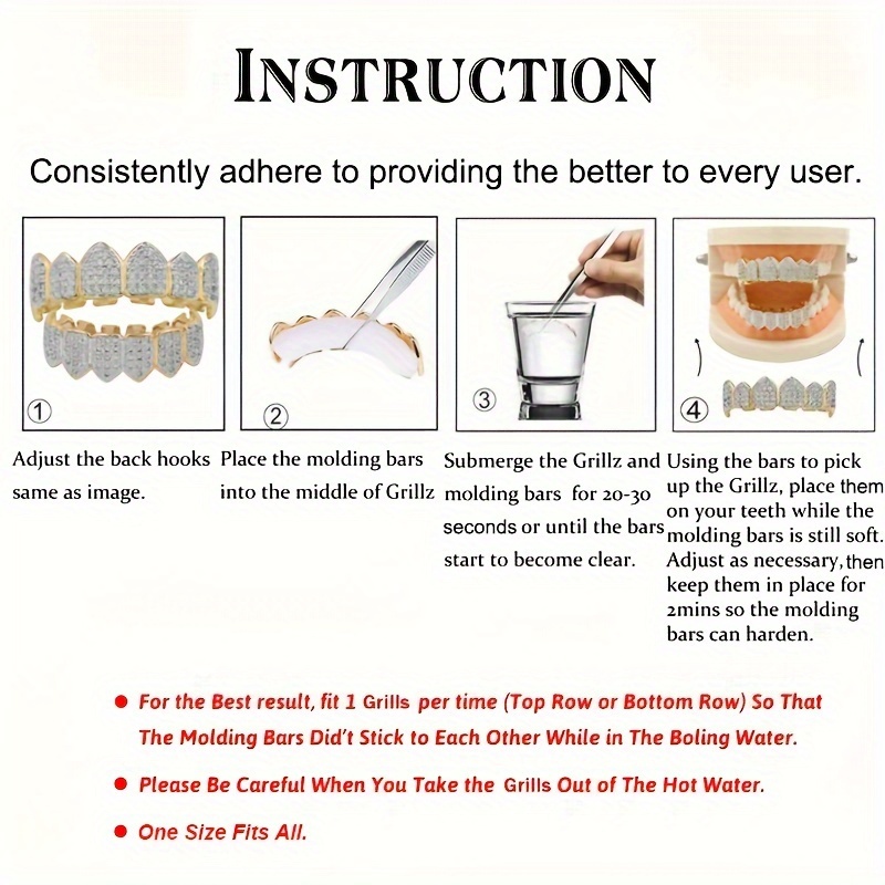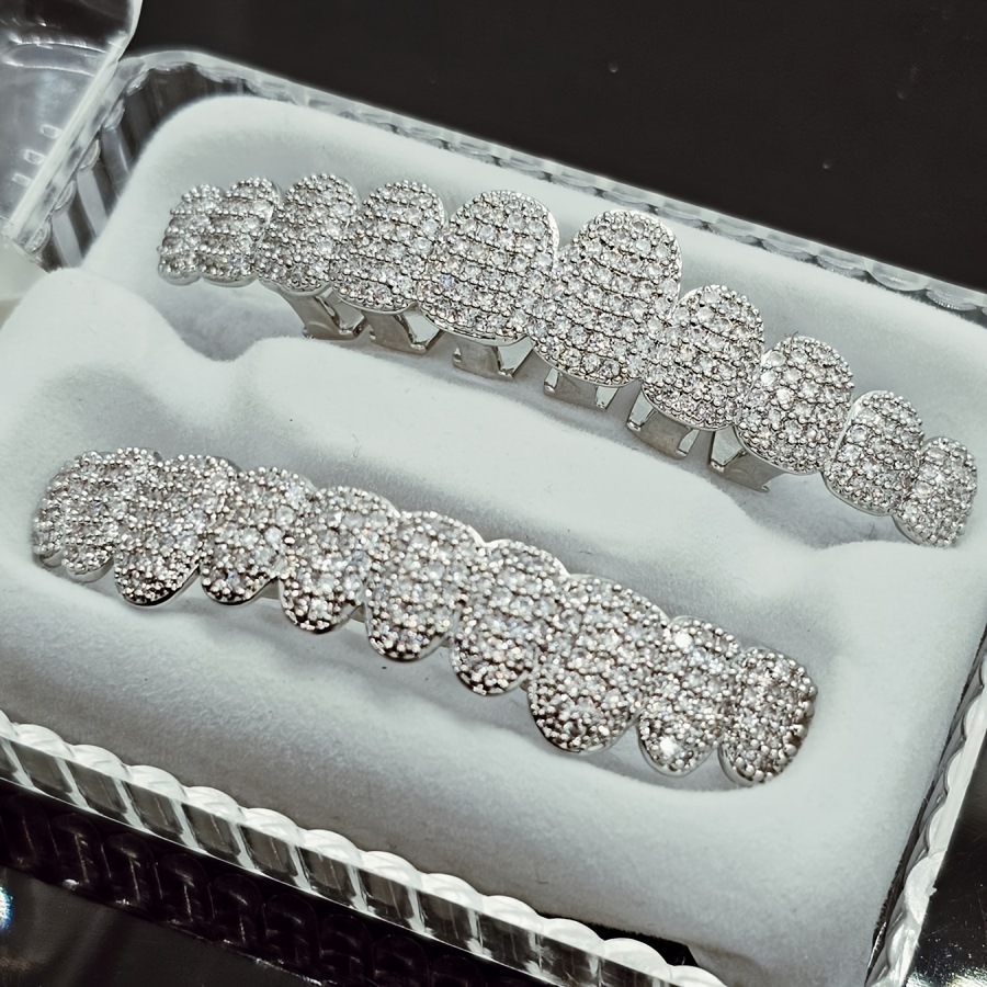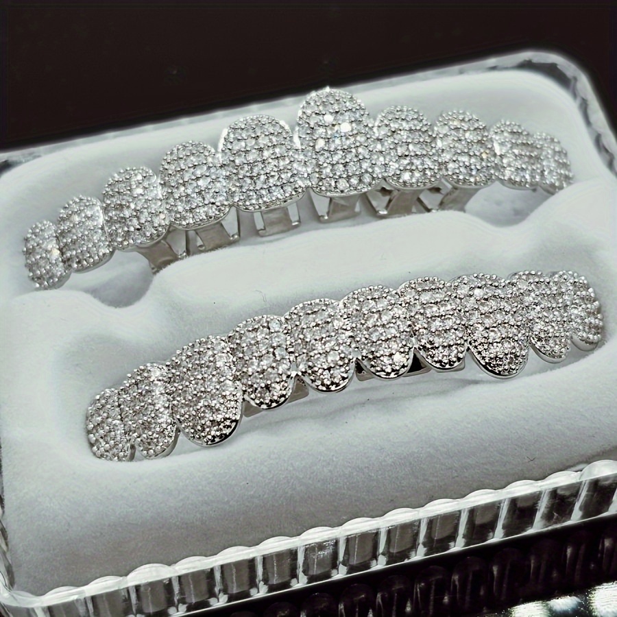 2pcs/set Synthetic Zircon Grillz Set, Unisex, Fashionable Hip Hop Mouth Teeth Grills, One Size Fits All, Removable Tooth Caps, For Rappers And Parties, With Mold Kit