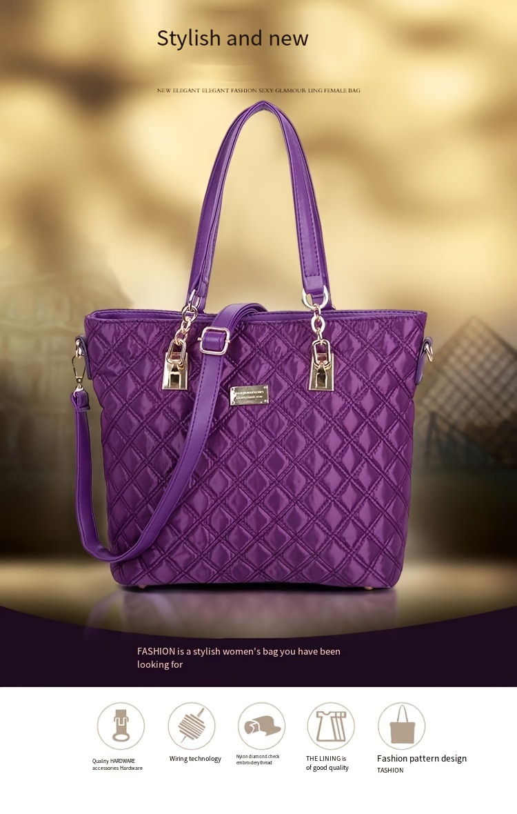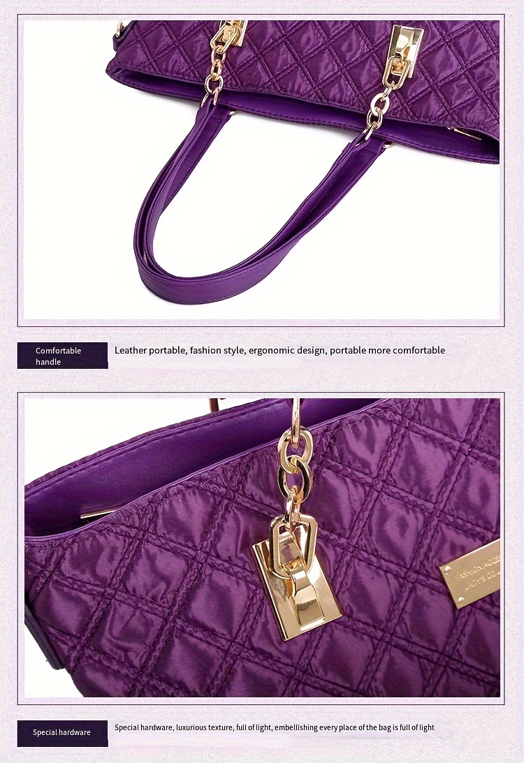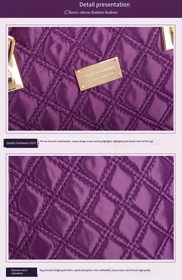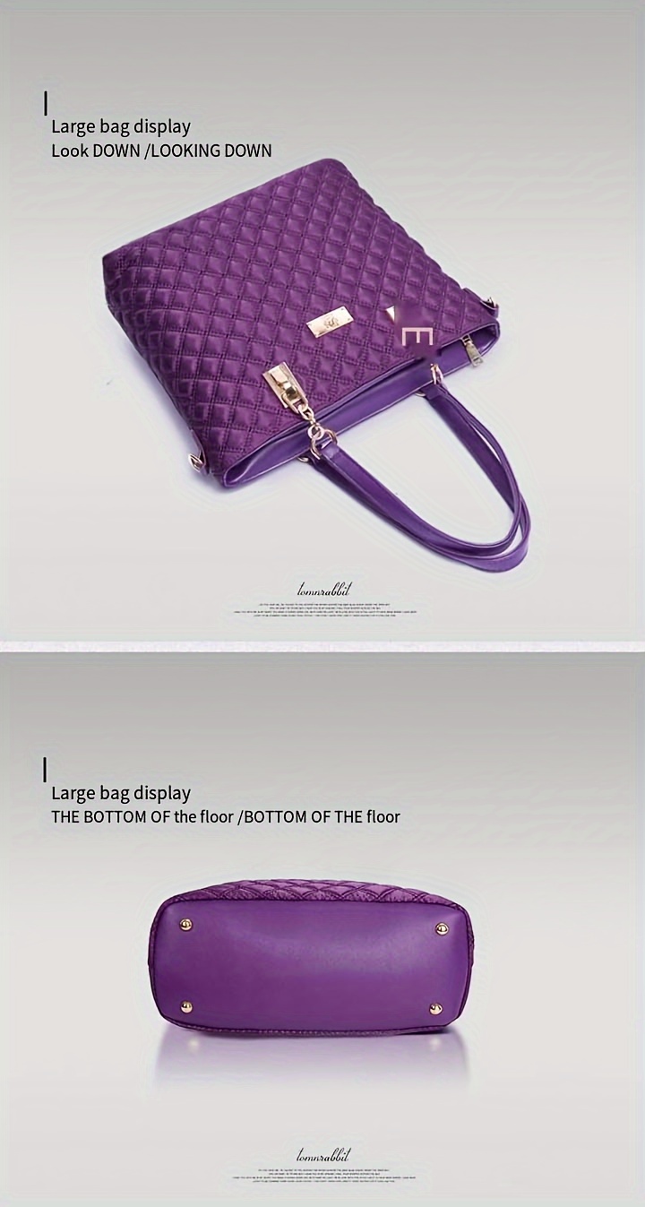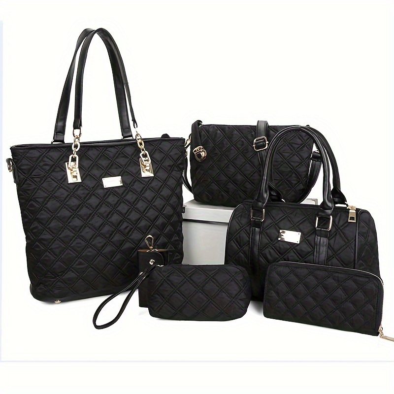 6pcs Chic Argyle Quilted Women's Purse Set - Stylish Solid Color Tote Bag with Boston Handbag, Crossbody Bag, Long Wallet, Wristlet Clutch, Coin Purse, and Key Holder - Perfect for Daily Use, Travel, and Work