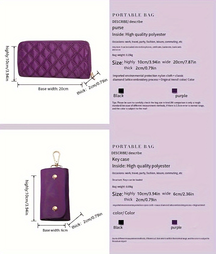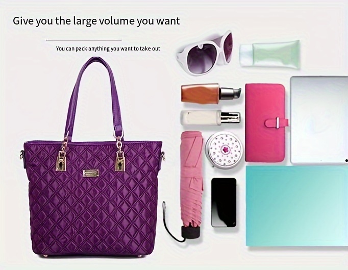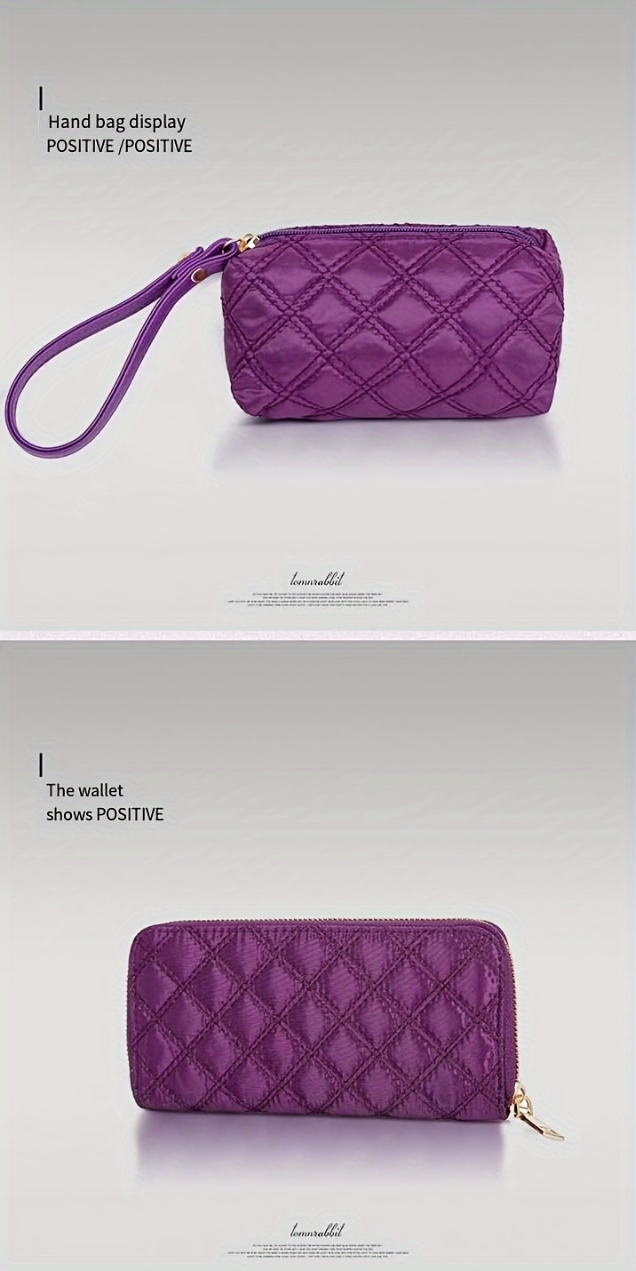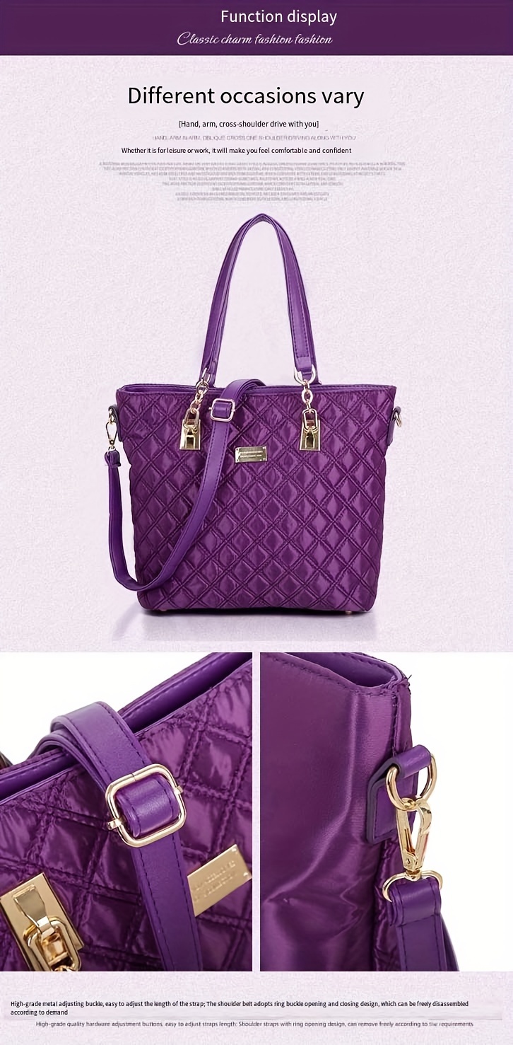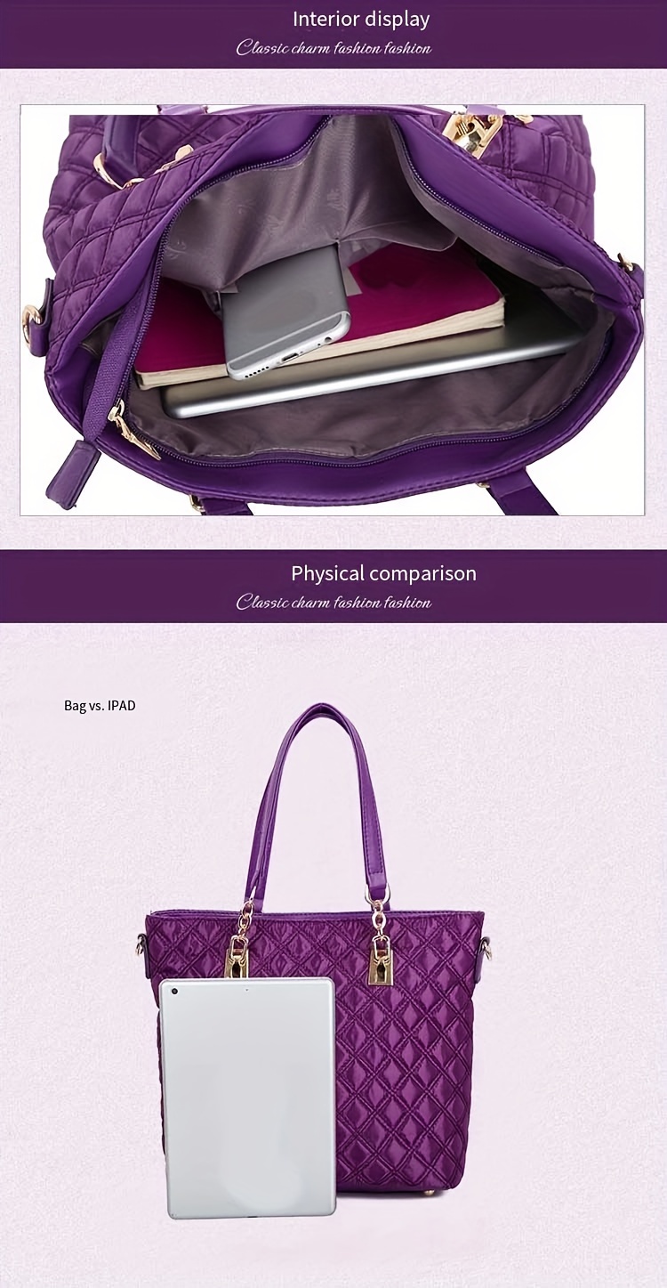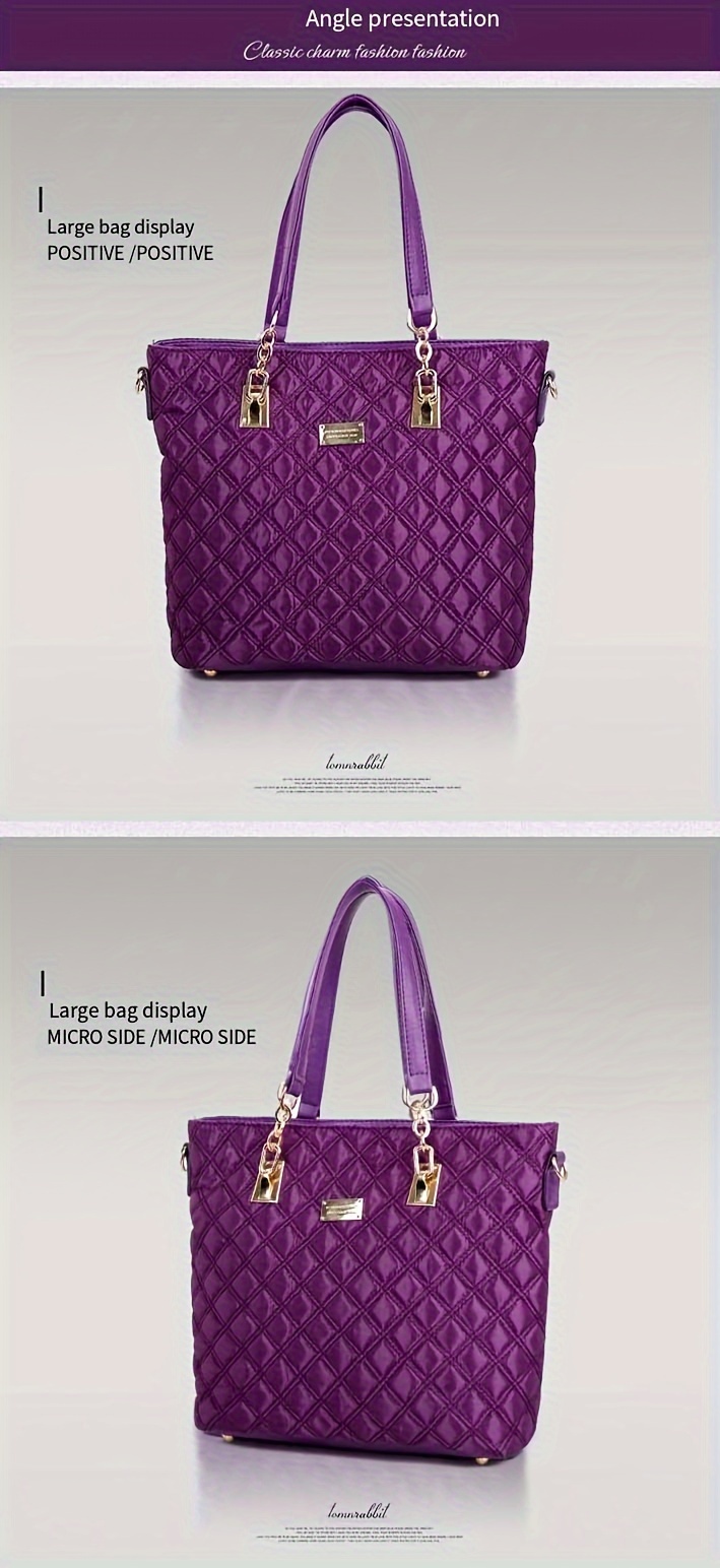 6pcs Chic Argyle Quilted Women's Purse Set - Stylish Solid Color Tote Bag with Boston Handbag, Crossbody Bag, Long Wallet, Wristlet Clutch, Coin Purse, and Key Holder - Perfect for Daily Use, Travel, and Work
