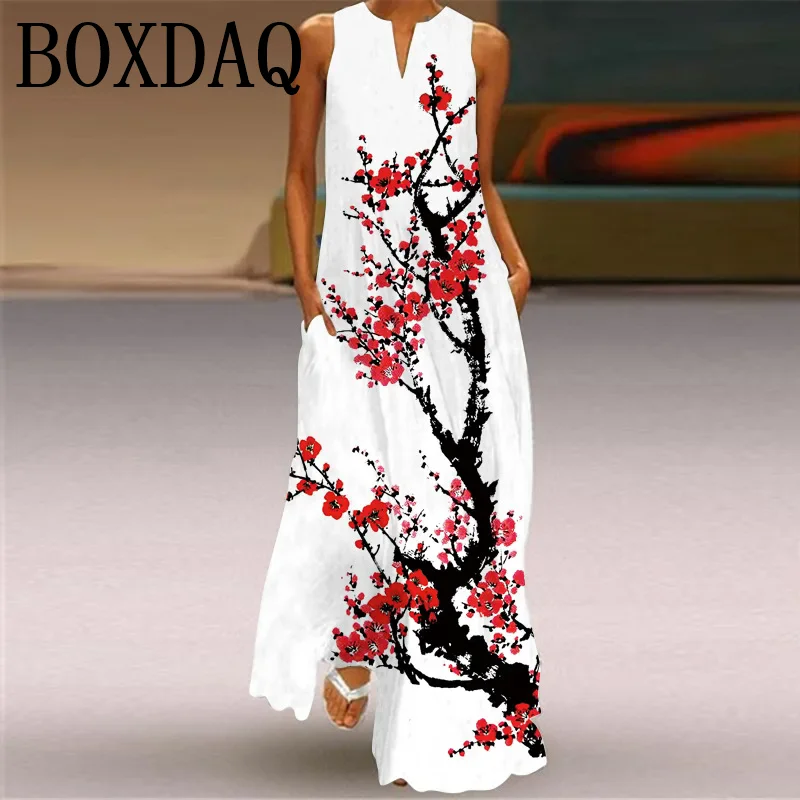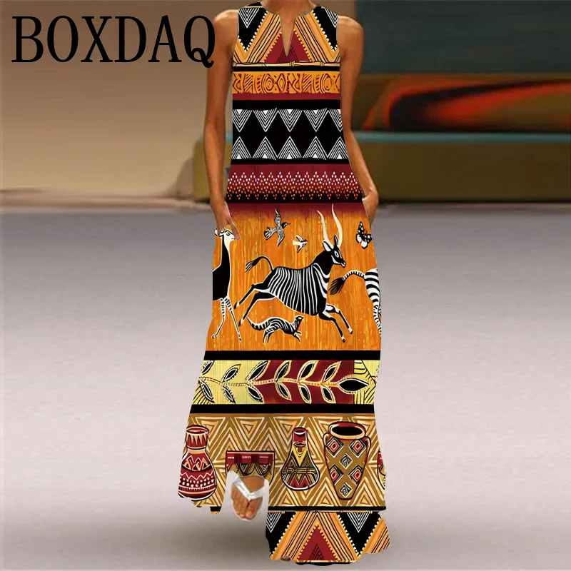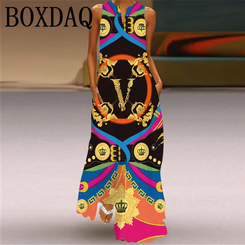 Elegant Women's Maxi Dress Summer Retro Women Face Print Evening Party Long Dress V-neck Sexy Sleeveless Dresses Y2k Vestidos