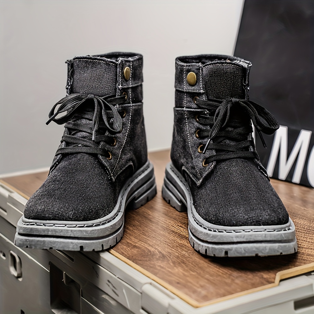 Men's Thick Anti-Slip Shock-Absorbing Ankle Boots - Durable PU Upper & PVC Sole, All-Season Versatile Lace-Up Shoes for Casual, Outdoor & Daily Wear, Casual Streetwear, Modern Street Footwear, Comfortable Fabric Insole