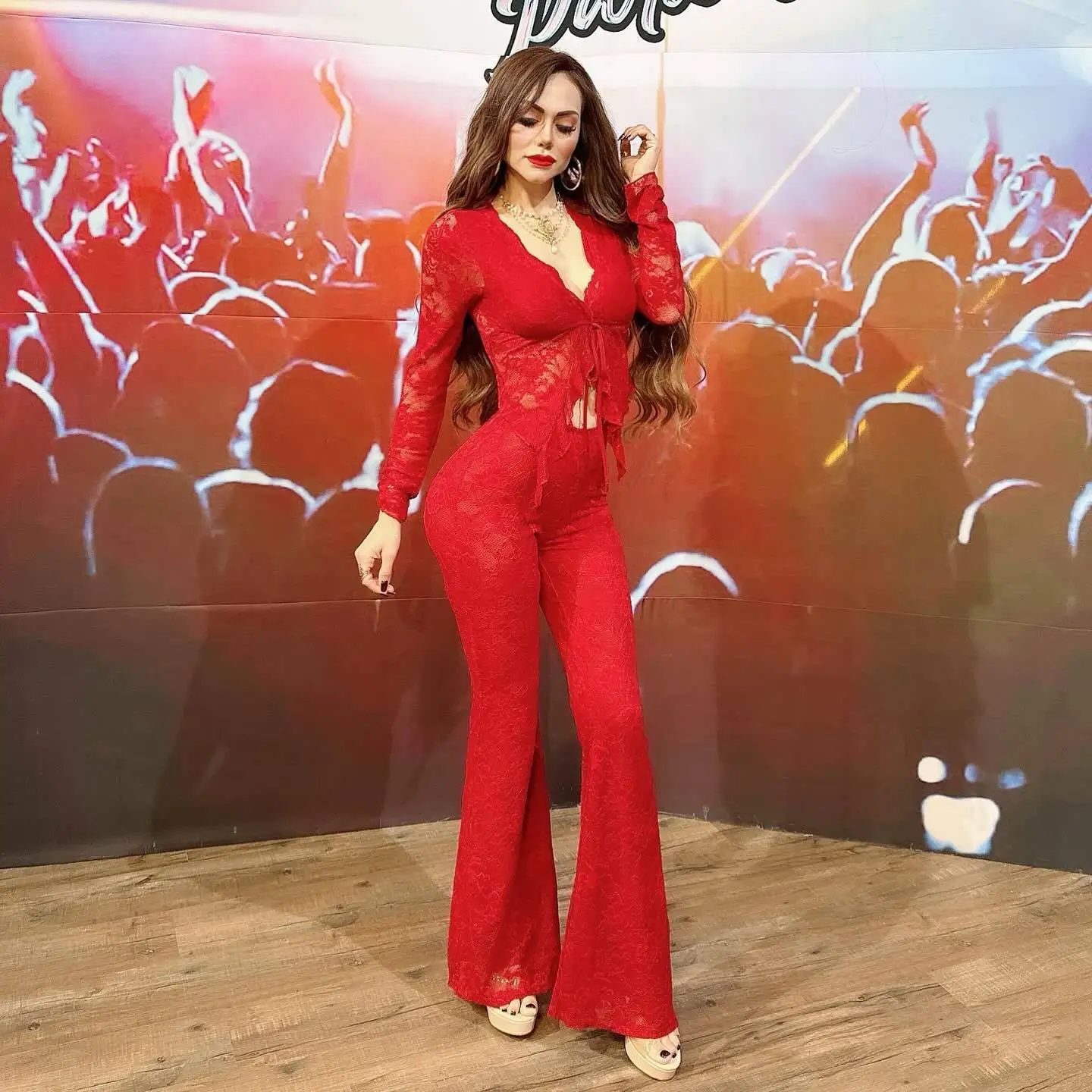 Pant Sets Women Two Pieces Cardigan Lace Sexy Tops Tracksuit Full Wide Leg Pants Loose Fit Casual Spliced High Waist Solid