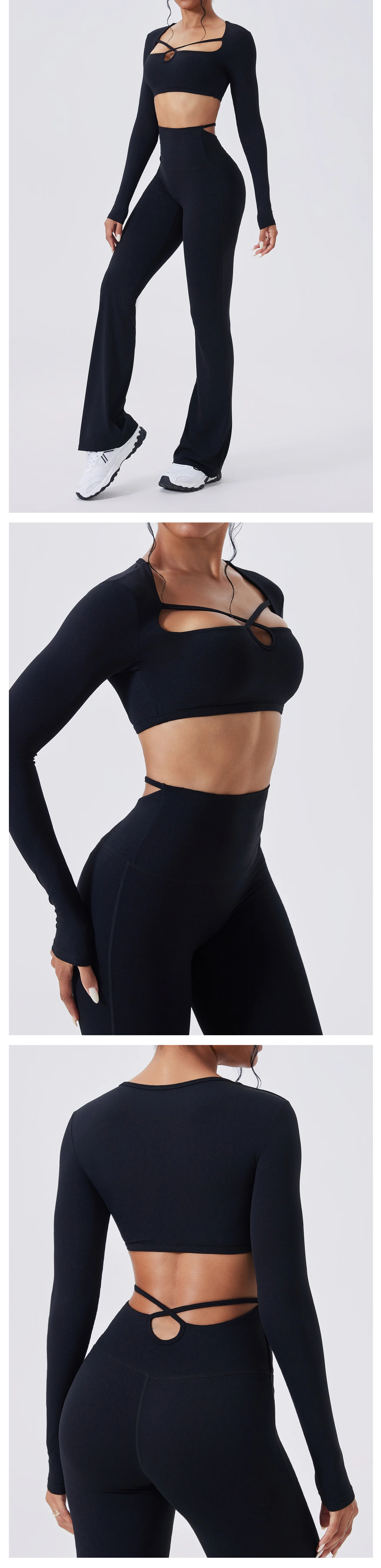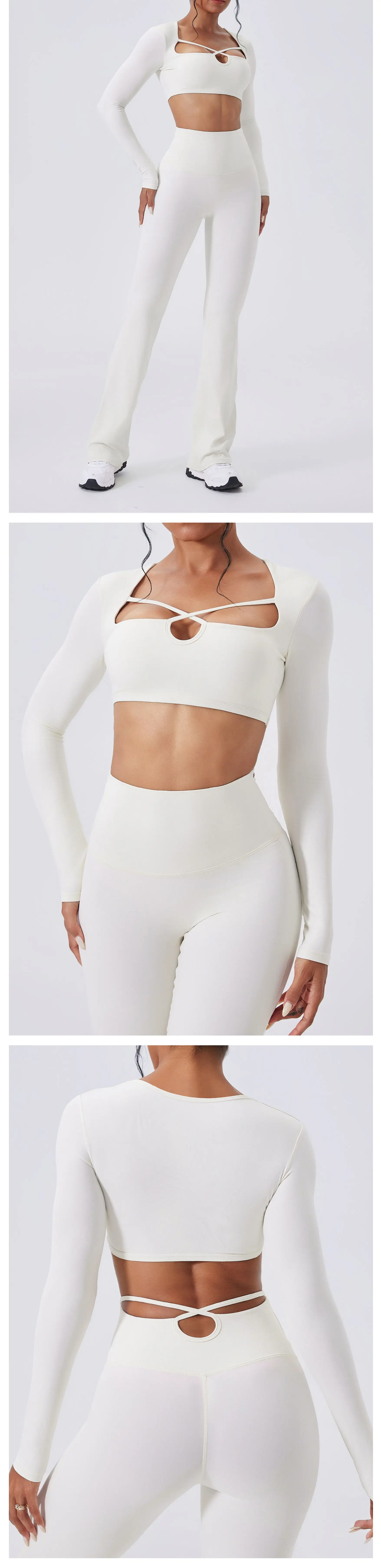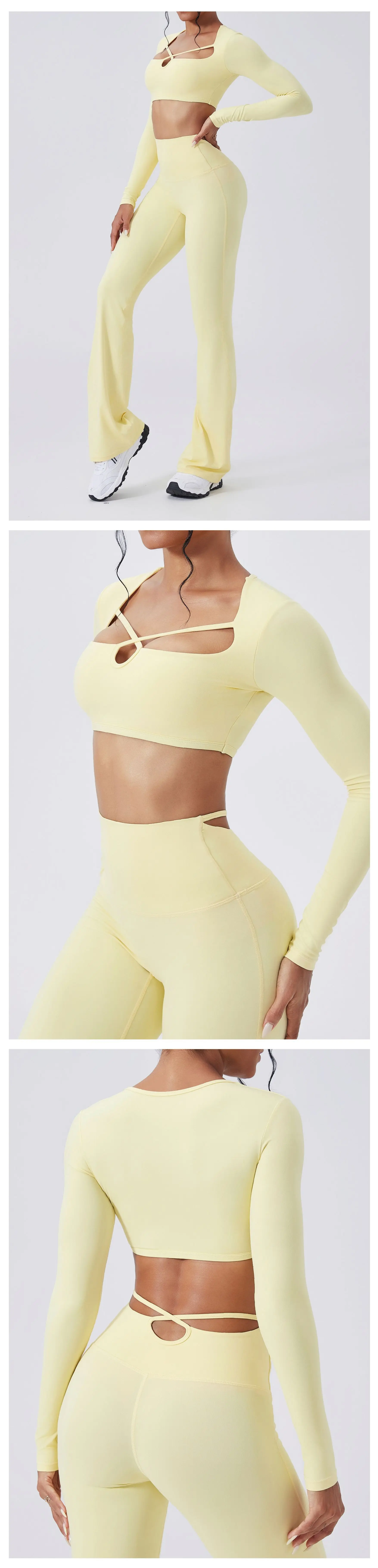 Sexy Square Neck Yoga Top Women Cutout Design Secado Rápido -Transpirable Long Sleeve Fitness Shirt Running Ropa Deportiva Mujer