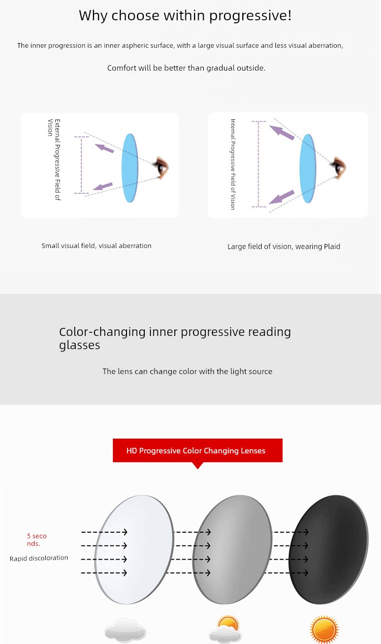 Smart Bluetooth Dual-Purpose Color Changing Presbyopic Glasses Automatic Zoom HD Anti-Blue Ray Presbyopic Glasses Call Music