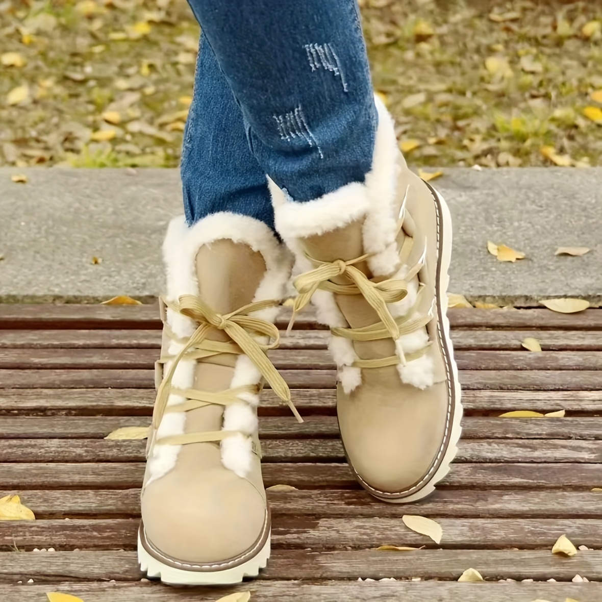 Women's Faux Fur Lined Snow Boots, Slip-Resistant Platform Soft Sole Warm Snow Boots, Comfort Mid-calf Non-slip Snow Boots