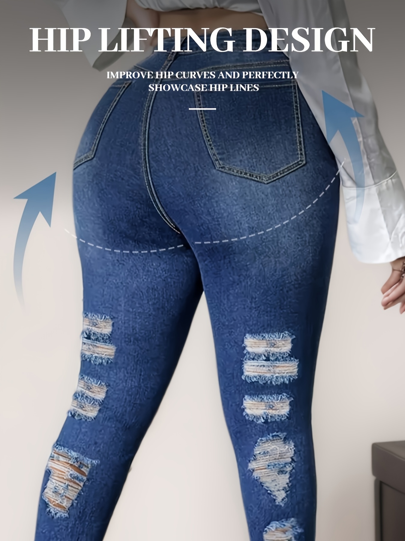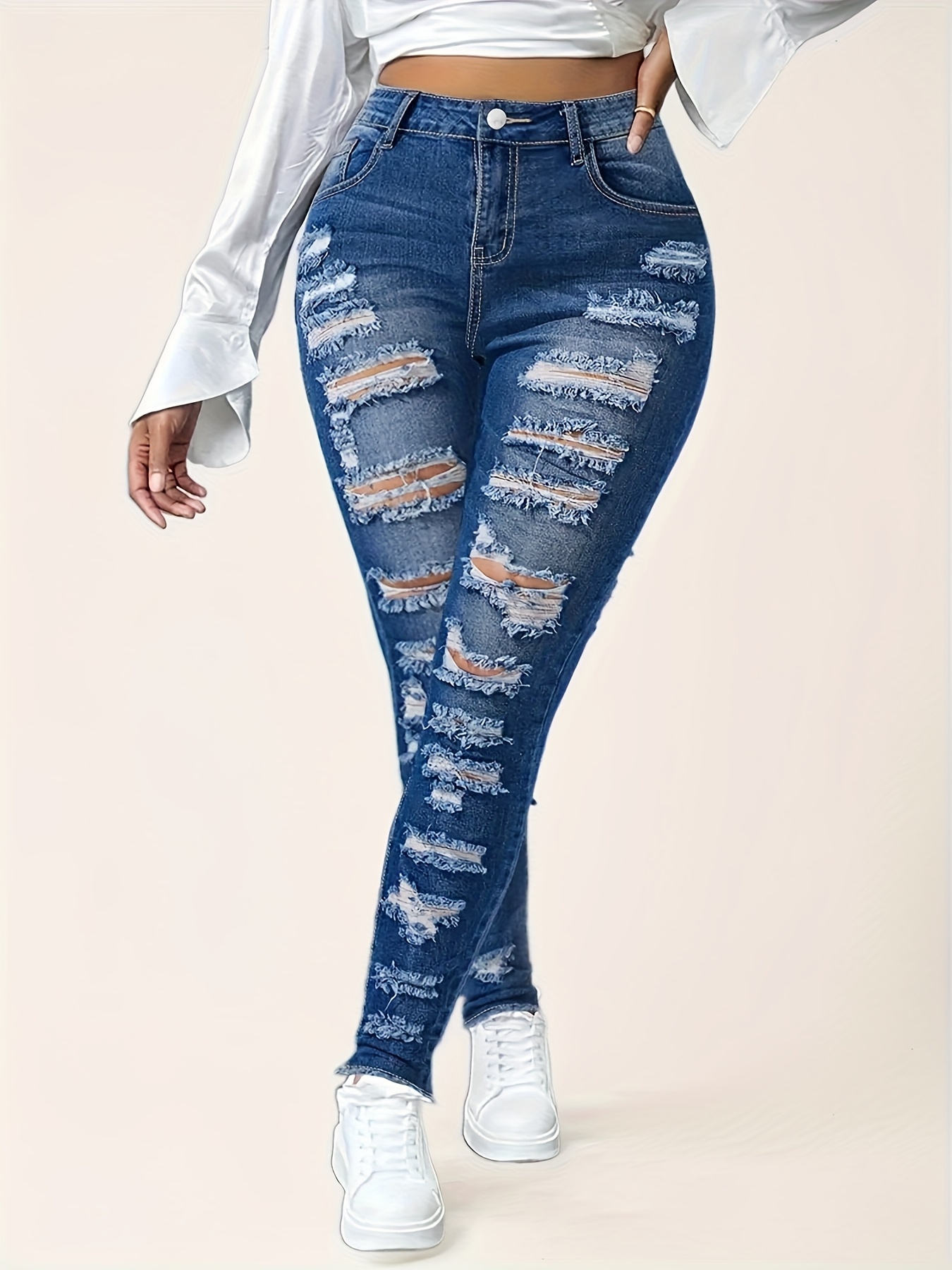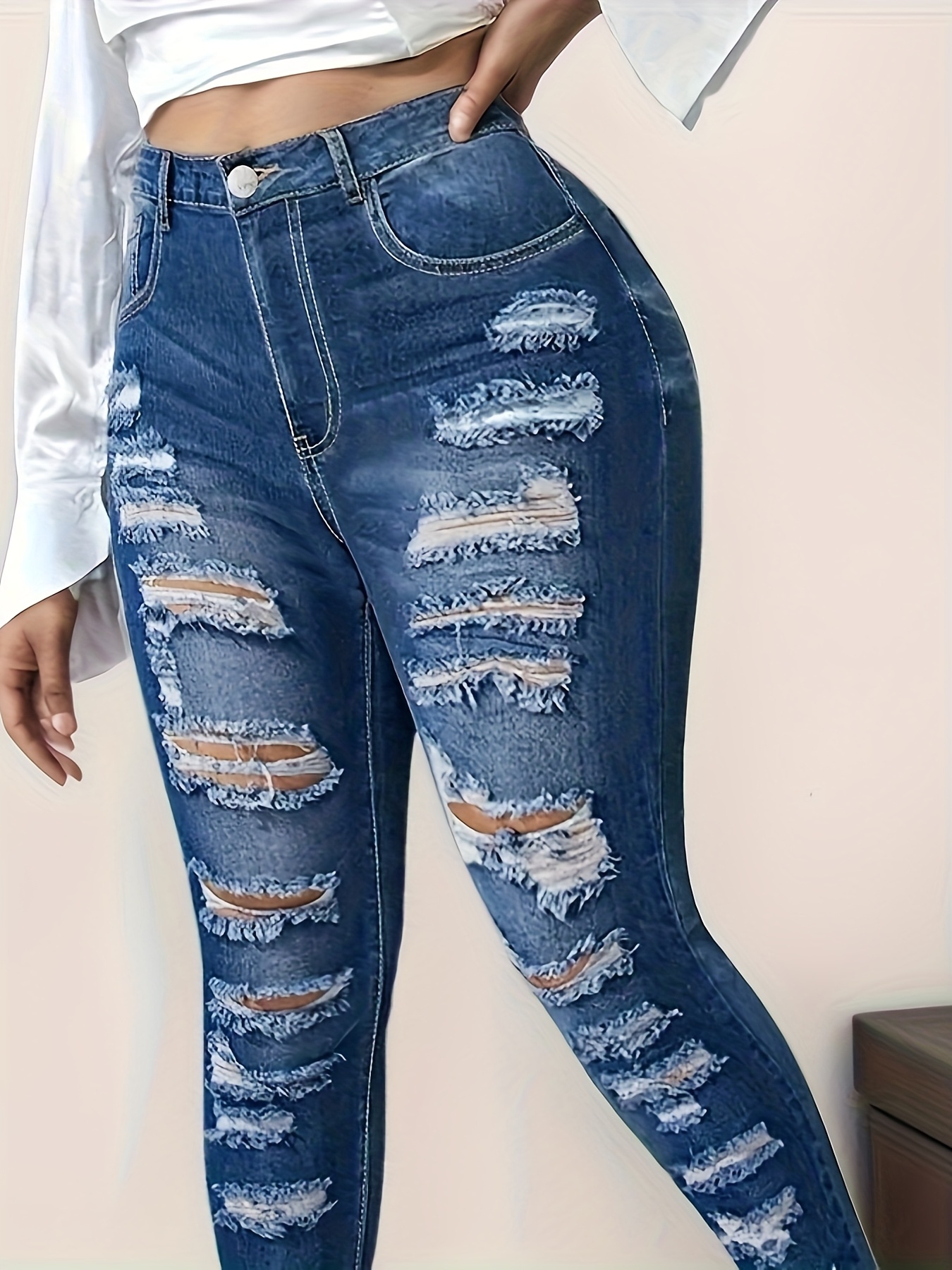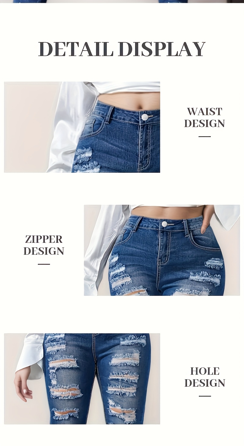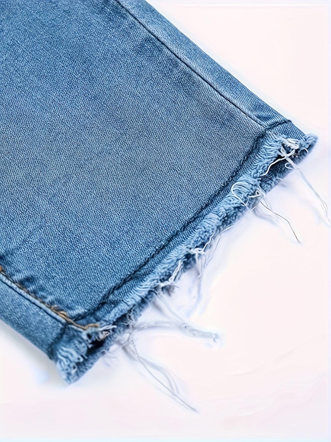 Women'S Slim-Fit Distressed Double-Sided Ripped Jeans - High-Waisted Stretch Denim Shorts with Frayed Hem & Slash Pockets, Casual Summer Streetwear, Light Blue Denim, Summer Casual Wear | Frayed Hem Jeans | Comfortable Fit