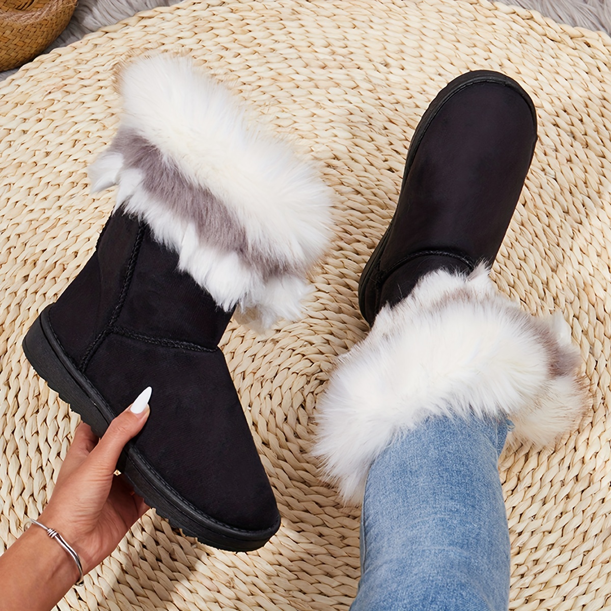 Women's Warm Snow Boots, Fashion Faux Fur Slip On Boots, Women's Comfortable Winter Boots