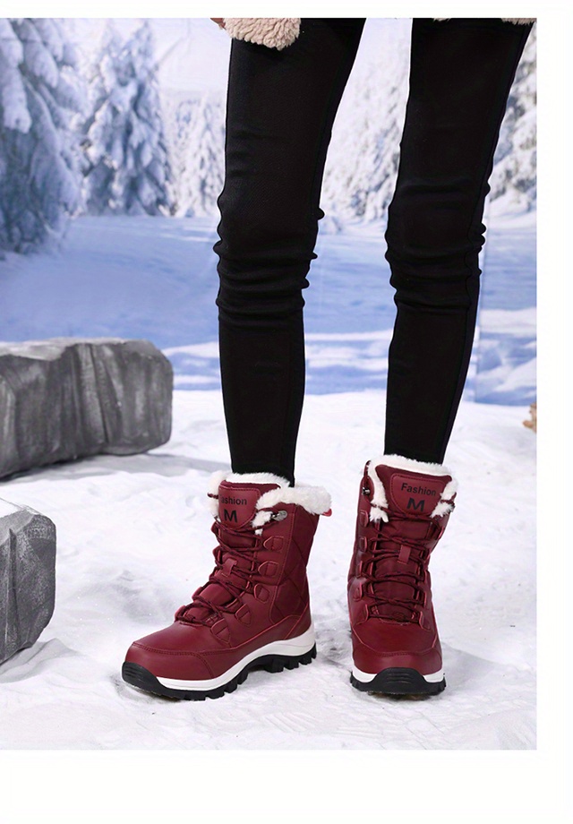 Women'S Winter Snow Boots, Anti-Slip Thick Warm Fleece-Lined Shoes, Solid Color, Round Toe, Fabric Upper, TPR Sole, Superfine Fiber Inner, Man-Made Materials - Cozy Footwear for Cold Weather