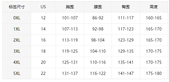 size_info: {"sizeInfoList":[{"length":{"cm":"104","inch":"40.94"},"size":"0XL","vid":-1},{"length":{"cm":"110","inch":"43.31"},"size":"1XL","vid":-2},{"length":{"cm":"116","inch":"45.67"},"size":"2XL","vid":-3},{"length":{"cm":"122","inch":"48.03"},"size":"3XL","vid":-4},{"length":{"cm":"128","inch":"50.39"},"size":"4XL","vid":-5},{"length":{"cm":"134","inch":"52.76"},"size":"5XL","vid":-6}]}