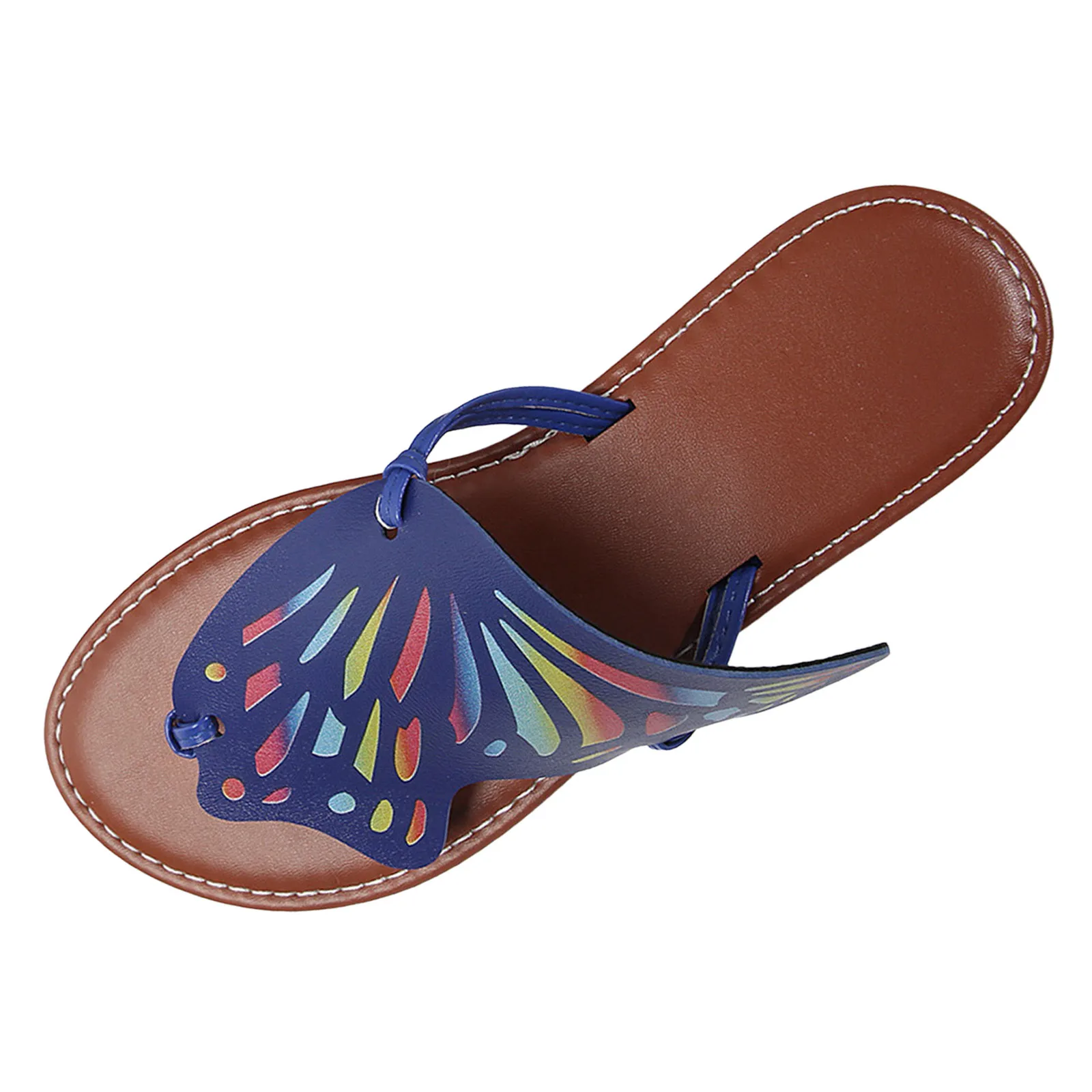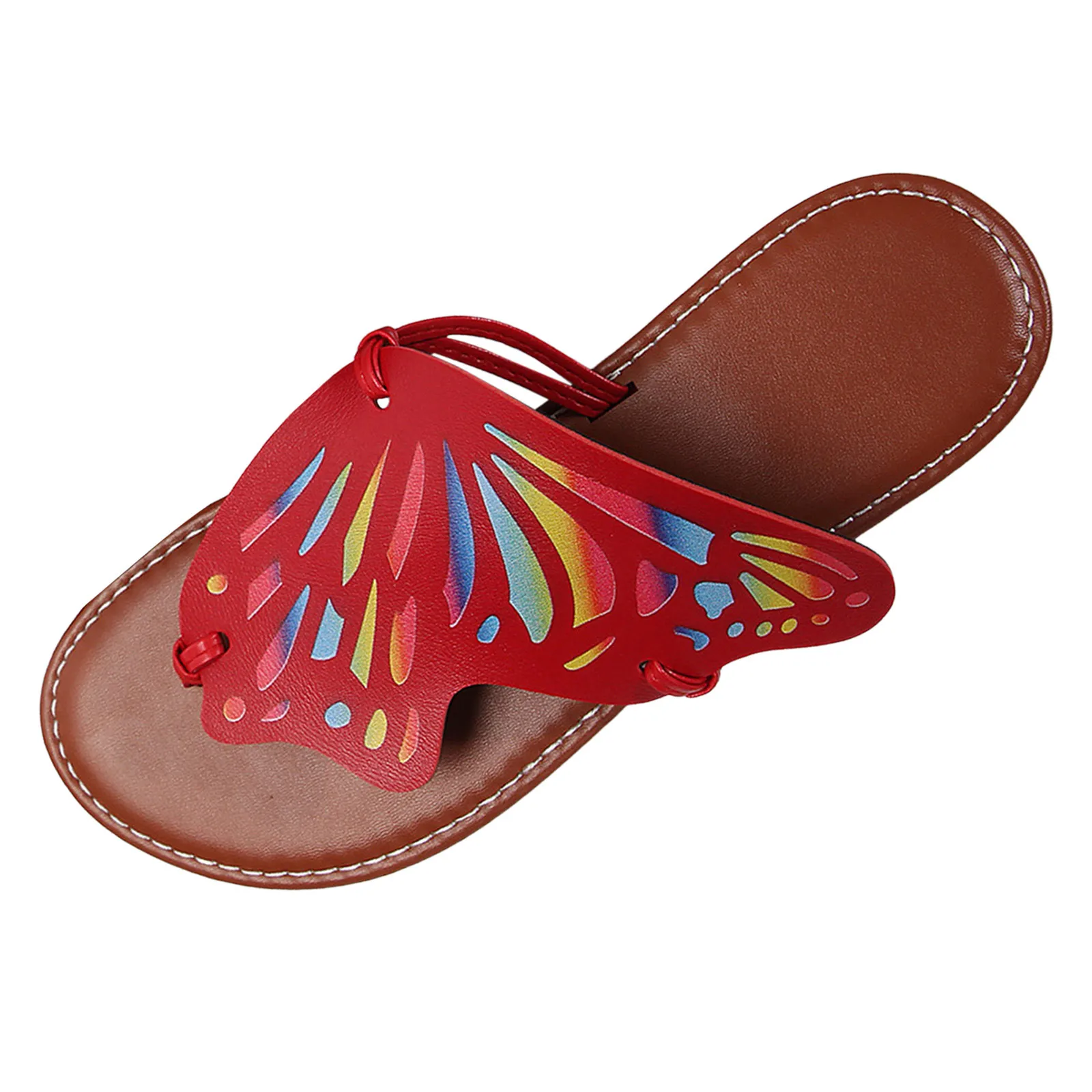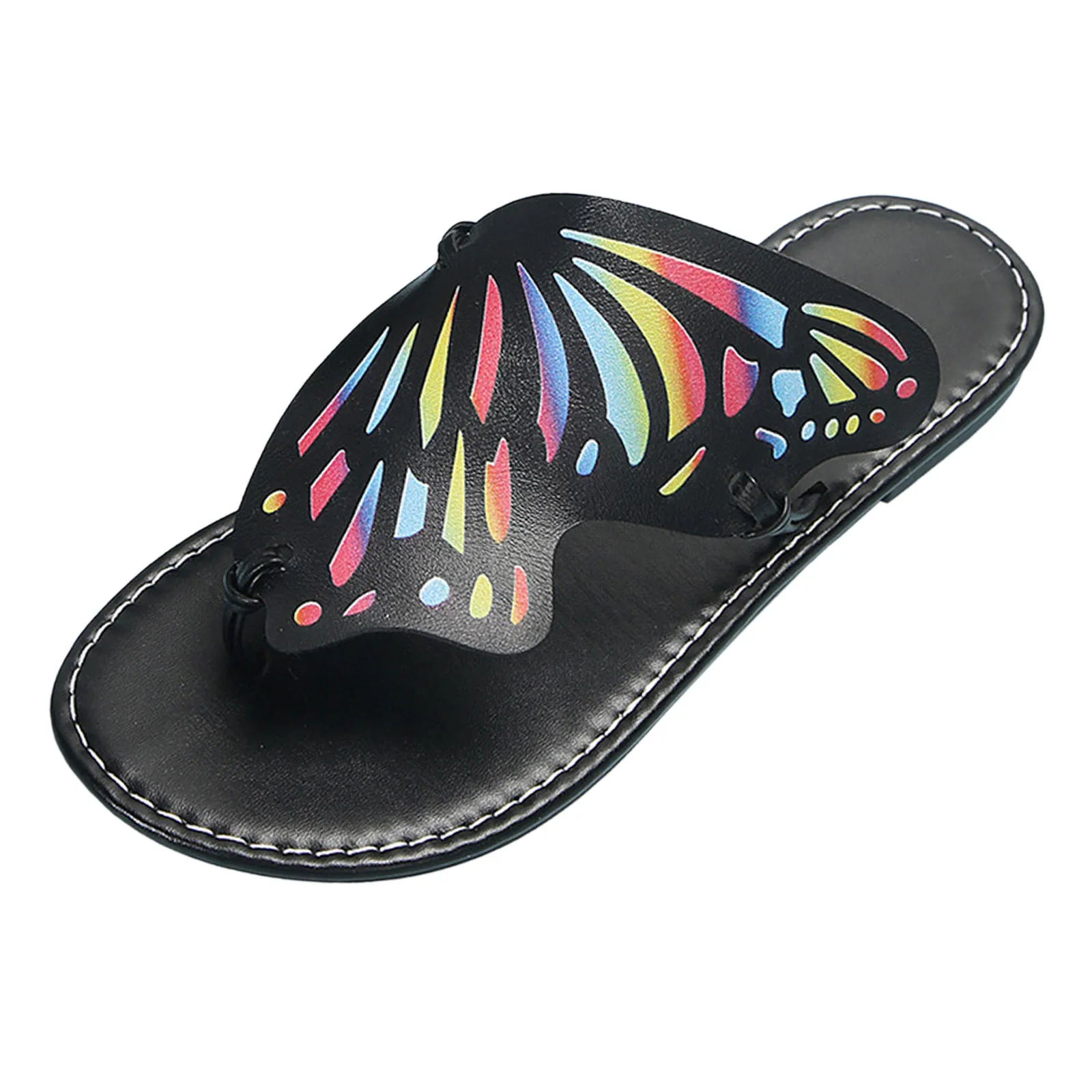 Ladies Summer Casual Colourful Butterfly Soft Leather Beach Outer Wear Large Size Flat Sandal Slippers