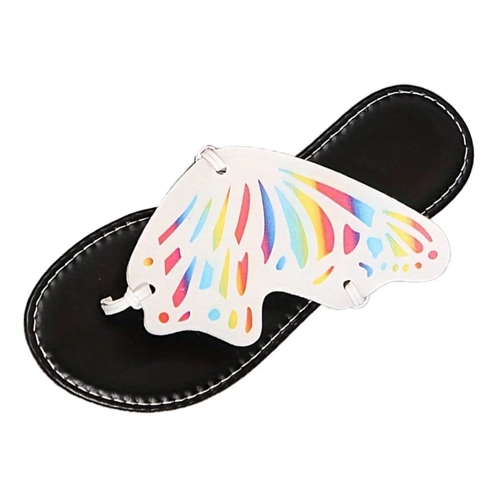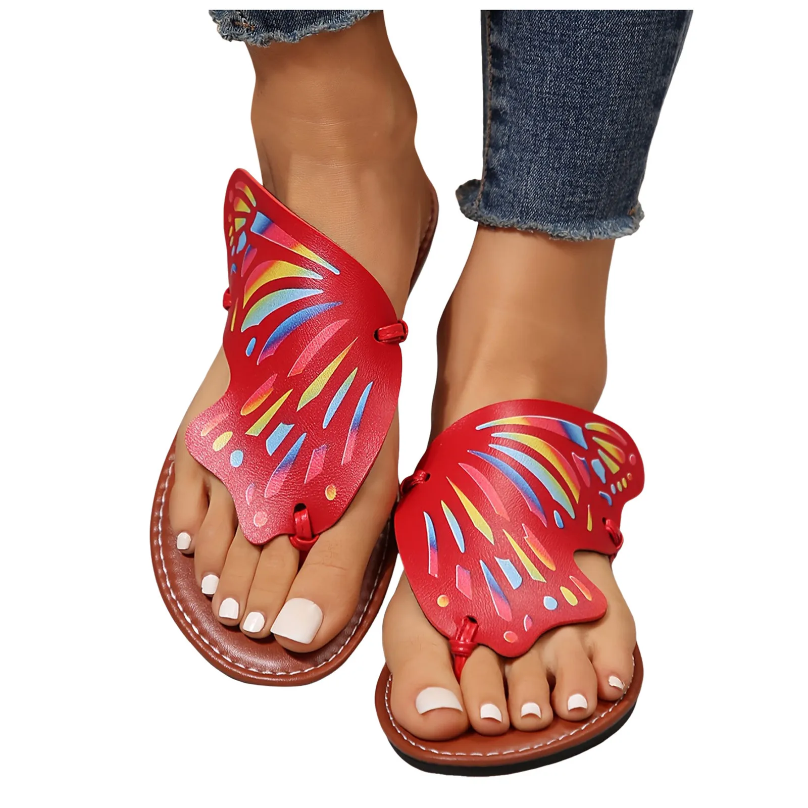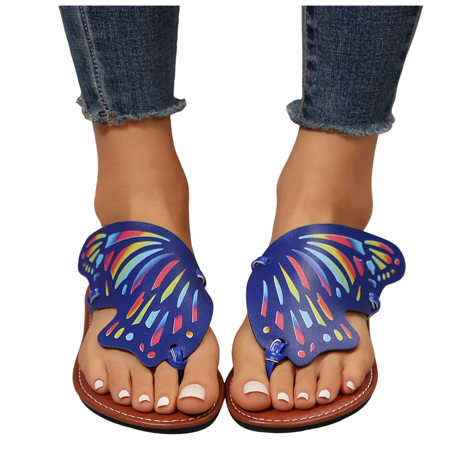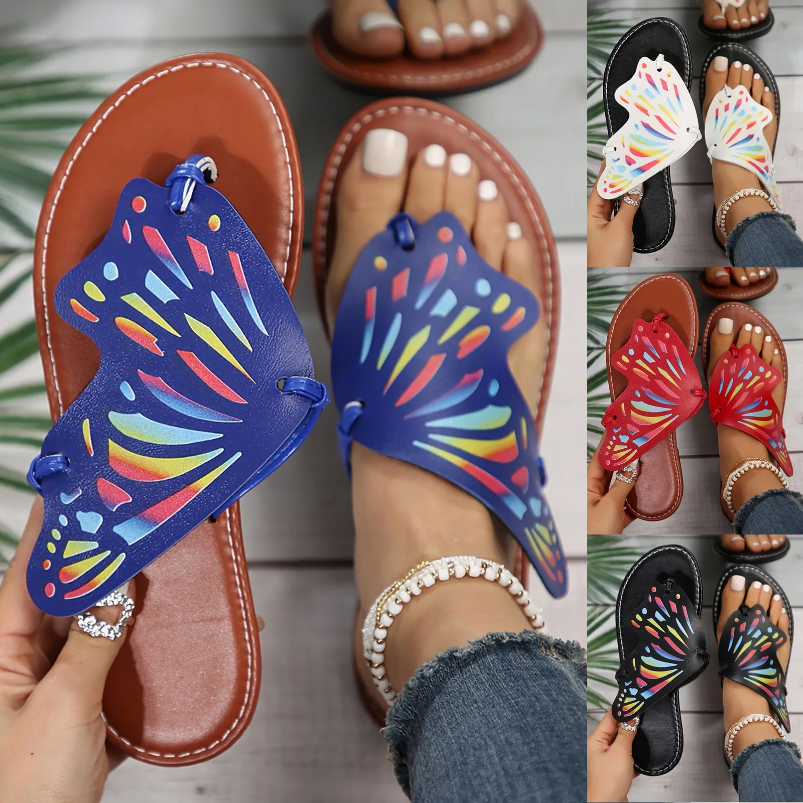 Ladies Summer Casual Colourful Butterfly Soft Leather Beach Outer Wear Large Size Flat Sandal Slippers